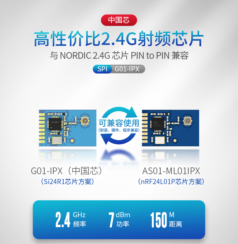 G01-IPX 是一款 2.4GHz,5mW,高速,高穩(wěn)定性,工業(yè)級(jí)的,集無(wú)線收發(fā)于一體的數(shù)傳模塊。模塊采用杭州中科微原裝 Si24R1 射頻芯片,工作在 2.4GHz~2.525GHz 的 ISM 頻段。該模塊輸出接口為 IPEX,超小體積,方便內(nèi)嵌在產(chǎn)品里邊。該模塊發(fā)射功率足,頻譜特性非常的好,諧波非常小,頻道串?dāng)_小,體積超小,部分器件達(dá)到了軍品級(jí)標(biāo)準(zhǔn)。