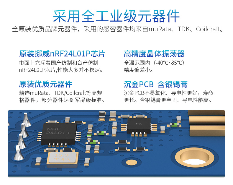 AS01-ML01DP3是一款2.4GHz,100mW,高速,高穩(wěn)定性,高性價比的集無線收發(fā)于一體的數(shù)傳模塊。模塊采用NORDIC原裝nRF24L01P射頻芯片與RFX2401C功放芯片,內建LNA,接收靈敏度提高10dBm,工作在2.4GHz~2.525GHz的ISM頻段。該模塊發(fā)射功率足,頻譜特性好,頻道串擾小,體積小,部分器件達到了軍品級標準。