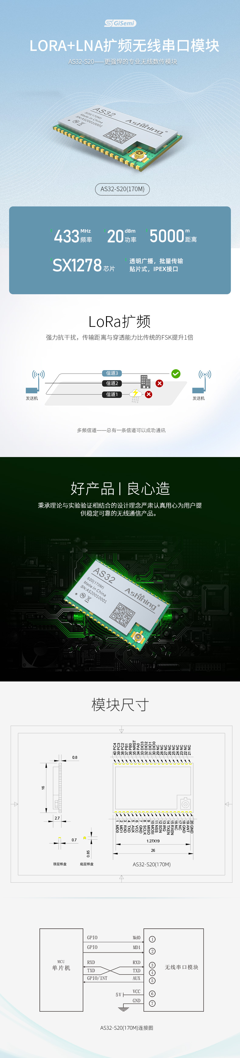 170MHz , 100mW,LNA,LORA擴頻無線串口模塊,數據加密,定點傳輸