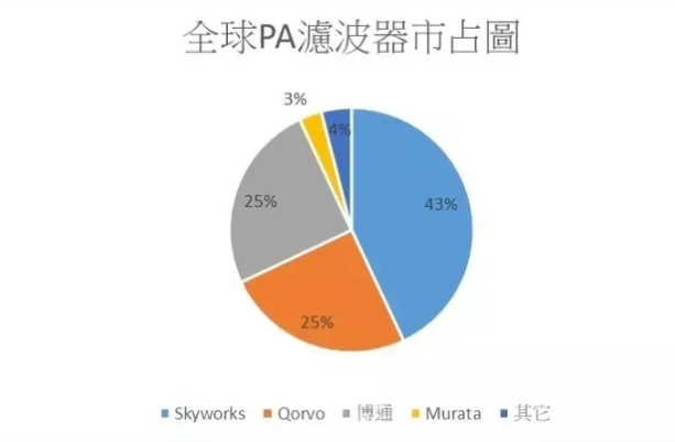 整體來看,射頻前端技術(shù)還是以歐美大廠獨(dú)占鰲頭,Skyworks、Qorvo、博通壟斷半壁江山。同時(shí),高通也看上射頻元件這塊大餅,已推出相關(guān)產(chǎn)品。這些歐美通訊大廠紛紛投入,拉高高階市場(chǎng)進(jìn)入門檻,導(dǎo)致其它新興小廠只能往中低階手機(jī)發(fā)展,形成激烈的價(jià)格競(jìng)爭(zhēng)態(tài)勢(shì)。