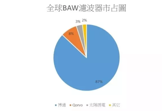 至于,BAW 濾波器寡占情況更嚴(yán)重,市場(chǎng)排名前三名分別為博通(87%)、Qorvo (8%)、太陽誘電(3%),合計(jì)高達(dá)98%。